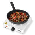 Elektryczna płyta grzewcza. Zasilanie - 220-240V, 50Hz, moc 1000W. Rozmiar palnika - 155 mm. Regulacja temperatury za pomocą termostatu. Zabezpieczenie przed przegrzaniem. Lampka kontrolna. Antypoślizgowe gumowe nóżki. Rozmiar produktu (245X220X70 mm). Długość miedzianego przewodu zasilającego 0,85 m. Kolor: biały.